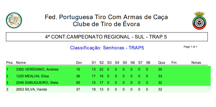 1º – DAMAS – REGIONAL SUL – TRAP5 – ÉVORA